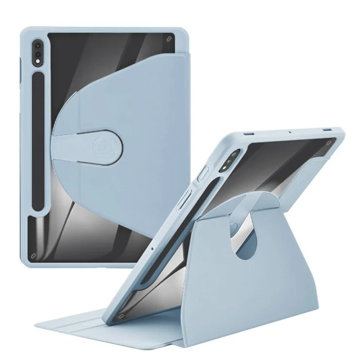 The Samsung Galaxy Tab S9+ Light Blue cases are slim, magnetic folio covers that protect both sides of the tablet. They feature a foldable stand for portrait/landscape viewing, automatic wake/sleep functionality, and a dedicated S Pen holder.
